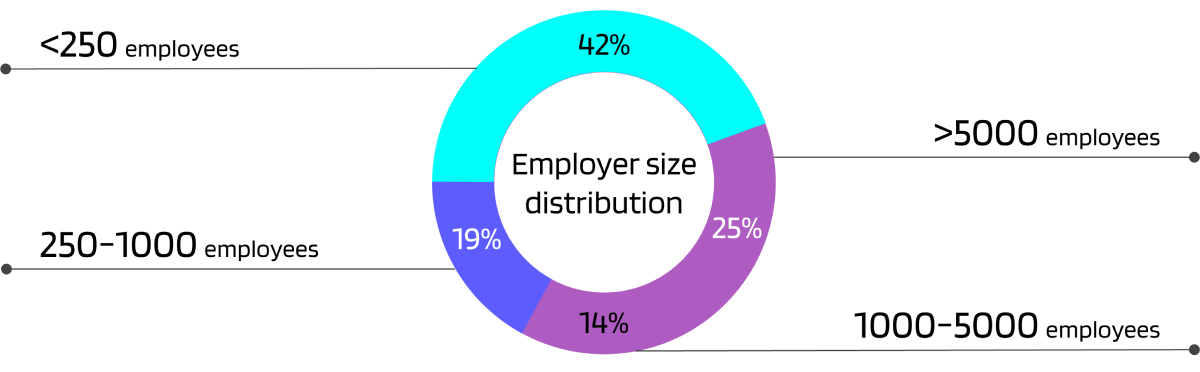 The basis for every good study is a robust and credible representative sample. We conducted our research across a population of 1000 UK employees that work for employers of different sizes as visualized below. Our goal is to enable everyone to be able to use our solution, so including as many different sectors and types of companies and categories of employees is crucial for us to establish the right conclusions.